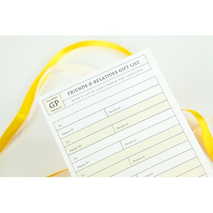 - “Friends & Relatives Gift List” card which walks clients through listing the print gifts they would like to send to friends and relatives - ask clients to fill this sheet out before you arrive so you can help them pick out images for the gifts!